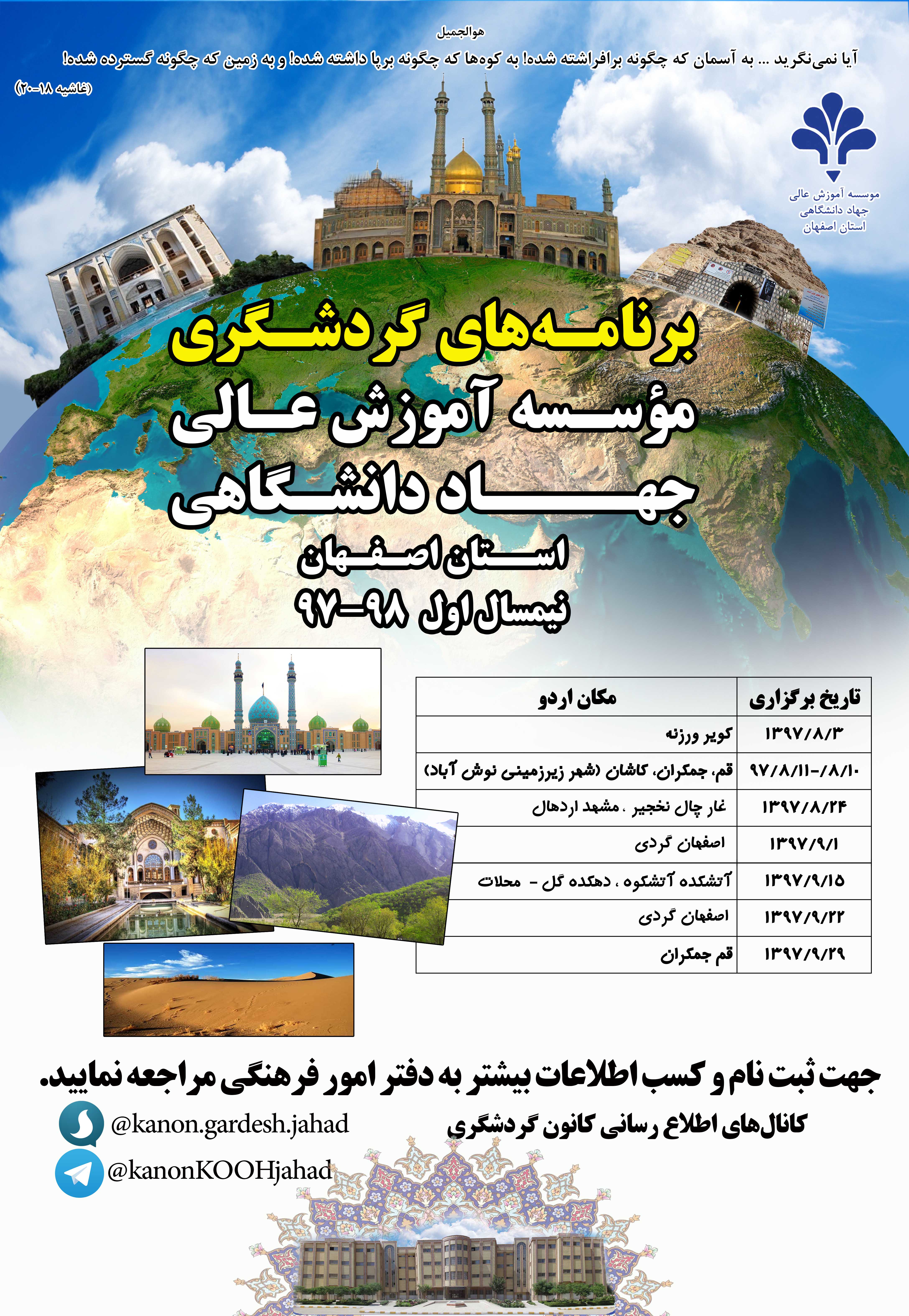 >>> برنامه های گردشگری موسسه در نیمسال اول 98-97 <<<